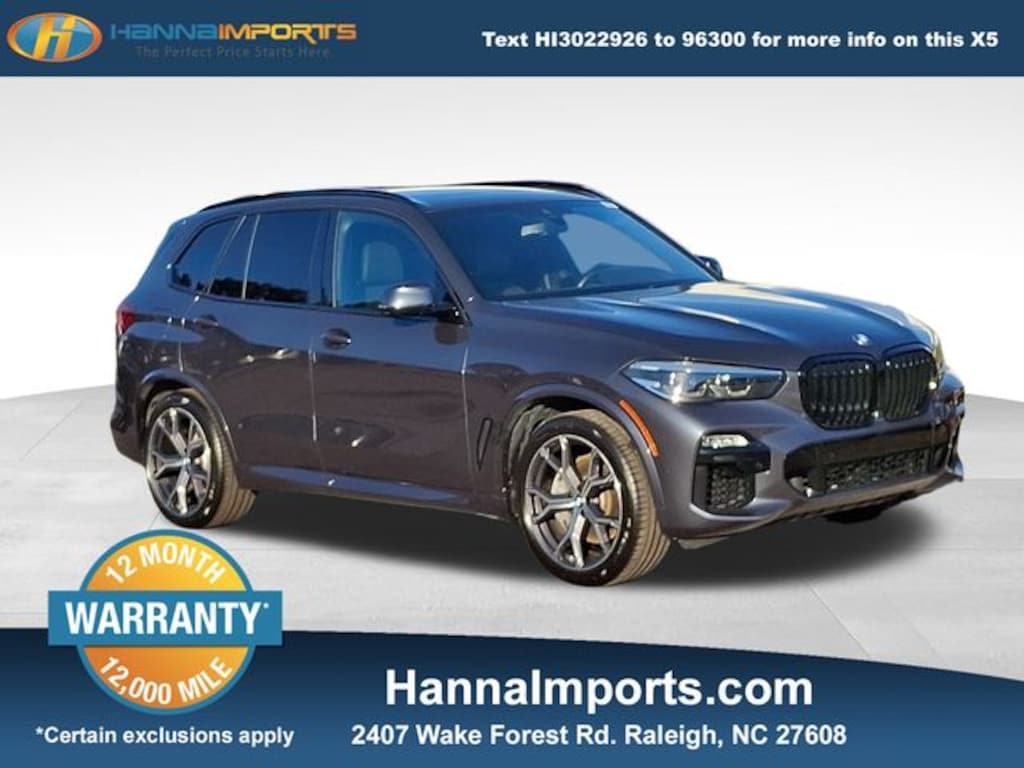Why shop with Hanna Imports? We specialize in hand-selecting top-quality used cars, trucks, and SUVs for drivers across Raleigh, Durham, Cary, Chapel Hill, and the greater Triangle area of North Carolina. Our massive selection of 1,000+ vehicles on our Raleigh lot is carefully curated to include the most sought-after models, all priced below market value. We believe in transparency and efficiencyâ"our vehicles are aggressively priced from the start, which means no haggling, no hassle, and no wasted time. The price you see is our absolute best price. Whether you're coming from Wake Forest, Apex, Garner, or anywhere in central NC, weâre committed to making your car-buying experience smooth, affordable, and enjoyable. Come see why Hanna Imports is one of the most trusted used car dealerships in North Carolina! Used BMW X5 in Raleigh. Used BMW X5 in North Carolina, Luggage-Compartment Package, Luxury Seating Package (Front Massaging Seats and Front Ventilated Seats), M Sport Package (Adaptive M Suspension, Aerodynamic Kit, High-Gloss Shadowline Roof Rails, M Sport Exhaust System, M Steering Wheel, Shadowline Exterior Trim, Wheels: 20" x 9" M Star-Spoke Bi-Color, and Without Lines Designation Outside), Premium Package 2 (Enhanced USB & Bluetooth, Gesture Control, Head-Up Display, WiFi Hotspot, and Wireless Charging), X5 xDrive50i, AWD, Black Leather, Exterior Parking Camera Rear, Navigation System, Power moonroof, Soft-Close Automatic Doors, 16 Speakers, 3.15 Axle Ratio, 4-Wheel Disc Brakes, ABS brakes, Air Conditioning, Alloy wheels, AM/FM radio: SiriusXM, AM/FM Stereo, Apple CarPlay, Auto High-beam Headlights, Auto tilt-away steering wheel, Auto-dimming door mirrors, Auto-dimming Rear-View mirror, Automatic temperature control, Brake assist, Bumpers: body-color, Compass, Delay-off headlights, Driver door bin, Driver vanity mirror, Dual front impact airbags, Dual front side impact airbags, Electronic Stability Control, Emergency communication system: BMW Assist eCall, Four wheel independent suspension, Front & Rear Heated Seats, Front anti-roll bar, Front Bucket Seats, Front Center Armrest, Front dual zone A/C, Front fog lights, Front reading lights, Fully automatic headlights, Garage door transmitter, Genuine wood console insert, Genuine wood dashboard insert, Genuine wood door panel insert, Glass Controls, harman/kardon Surround Sound System, harman/kardon® Speakers, Head restraints memory, Heated door mirrors, Heated Front Seats, Heated front seats, Heated Front Seats w/Armrests & Steering Wheel, Illuminated entry, Increased Top Speed Limiter, Knee airbag, Leather Shift Knob, Leather steering wheel, Low tire pressure warning, Memory seat, Multi-Contour Seats, Occupant sensing airbag, Outside temperature display, Overhead airbag, Panic alarm, Passenger door bin, Passenger vanity mirror, Power adjustable front head restraints, Power door mirrors, Power driver seat, Power passenger seat, Power steering, Power windows, Radio data system, Rain sensing wipers, Rear air conditioning, Rear anti-roll bar, Rear dual zone A/C, Rear reading lights, Rear seat center armrest, Rear window defroster, Rear window wiper, Remote Engine Start, Remote keyless entry, Roof rack: rails only, Security system, SiriusXM Satellite Radio w/1 Year