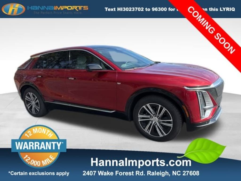 Why shop with Hanna Imports? We specialize in hand-selecting top-quality used cars, trucks, and SUVs for drivers across Raleigh, Durham, Cary, Chapel Hill, and the greater Triangle area of North Carolina. Our massive selection of 1,000+ vehicles on our Raleigh lot is carefully curated to include the most sought-after models, all priced below market value. We believe in transparency and efficiencyâ"our vehicles are aggressively priced from the start, which means no haggling, no hassle, and no wasted time. The price you see is our absolute best price. Whether you're coming from Wake Forest, Apex, Garner, or anywhere in central NC, weâre committed to making your car-buying experience smooth, affordable, and enjoyable. Come see why Hanna Imports is one of the most trusted used car dealerships in North Carolina! Used Cadillac LYRIQ in Raleigh. Used Cadillac LYRIQ in North Carolina, Driver Assist Package (Enhanced Automatic Parking Assist, HD Surround Vision, Intersection Automatic Emergency Braking, Power-Folding Outside Heated Mirrors, Rear Pedestrian Alert, and Side Bicyclist Alert), LYRIQ Luxury, AWD, Power Liftgate, Wheels: 20" Split 6-Spoke Alloy, 11.63 Axle Ratio, 4-Wheel Disc Brakes, 8-Way Power Driver Seat Adjuster, ABS brakes, Air Conditioning, Alloy wheels, AM/FM radio: SiriusXM with 360L, Apple CarPlay/Android Auto, Auto High-beam Headlights, Auto-dimming door mirrors, Auto-dimming Rear-View mirror, Automatic temperature control, Battery Pack Origin, Brake assist, Bumpers: body-color, Compass, Delay-off headlights, Driver & Front Passenger Heated Seats, Driver 4-Way Power Lumbar Seat Adjustment, Driver door bin, Driver vanity mirror, Dual front impact airbags, Dual front side impact airbags, Electronic Stability Control, Emergency communication system: OnStar and Cadillac connected services capable, Four wheel independent suspension, Front & Rear All-Weather Floor Mats, Front anti-roll bar, Front Bucket Seats, Front Center Armrest, Front dual zone A/C, Front License Plate Bracket, Front Passenger 4-Way Power Lumbar Seat Adjustment, Front reading lights, Fully automatic headlights, Garage door transmitter, Heated door mirrors, Heated front seats, Heated steering wheel, Hitch Guidance w/Trailering Assist Guideline, Hitch View, Illuminated entry, Inteluxe Seat Trim, Knee airbag, Leather steering wheel, Low tire pressure warning, Memory seat, Navigation system: Google Automotive Services Capable, Occupant sensing airbag, Outside temperature display, Overhead airbag, Overhead console, Panic alarm, Passenger door bin, Passenger vanity mirror, Power door mirrors, Power driver seat, Power passenger seat, Power steering, Power windows, Premium Suspension, Radio data system, Radio: Google Built-In Infotainment Experience, Rain sensing wipers, Rear anti-roll bar, Rear reading lights, Rear seat center armrest, Rear window defroster, Remote keyless entry, Security system, SiriusXM w/360L, Speed control, Speed-sensing steering, Split folding rear seat, Spoiler, Steering wheel memory, Steering wheel mounted audio controls, Telescoping steering wheel, Tilt steering wheel, Traction control, Trip computer, Turn signal indicator mirrors, and Variably intermittent wipers.