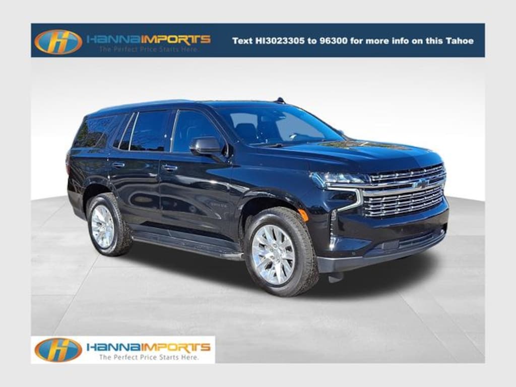 Why shop with Hanna Imports? We specialize in hand-selecting top-quality used cars, trucks, and SUVs for drivers across Raleigh, Durham, Cary, Chapel Hill, and the greater Triangle area of North Carolina. Our massive selection of 1,000+ vehicles on our Raleigh lot is carefully curated to include the most sought-after models, all priced below market value. We believe in transparency and efficiencyâ"our vehicles are aggressively priced from the start, which means no haggling, no hassle, and no wasted time. The price you see is our absolute best price. Whether you're coming from Wake Forest, Apex, Garner, or anywhere in central NC, weâre committed to making your car-buying experience smooth, affordable, and enjoyable. Come see why Hanna Imports is one of the most trusted used car dealerships in North Carolina! Used Chevrolet Tahoe in Raleigh. Used Chevrolet Tahoe in North Carolina, Preferred Equipment Group 1LZ (1st & 2nd Row Color-Keyed Carpeted Floor Mats, 2-Speed Active Electronic AutoTrac Transfer Case, 3rd Row 60/40 Power-Folding Split-Bench Seat, Auto-Dimming Inside Rear-View Mirror, Bose 10-Speaker Centerpoint Surround Audio Sys Ft, Bright Front & Rear Door Sill Plates, Chrome Door Handles w/Body-Color Strip, Chrome Mirror Caps, Color-Keyed Carpeting Floor Covering, Driver & Front Outboard Passenger Airbags, Dual Exhaust System, Enhanced Driver Information Center, Floor Console, Hands-Free Rear Power Programmable Liftgate, Heated 2nd Row Outboard Seats, Heated Steering Wheel, Hill Descent Control, Lane Change Alert w/Side Blind Zone Alert, LED Daytime Running Lamps, Memory Settings, Outside Heated Power-Adjustable Mirrors, Power Release 2nd Row Bucket Seats, Power Tilt & Telescopic Steering Column, Rear Cross Traffic Alert, Remote Start, Safety Alert Seat, SiriusXM w/360L, Universal Home Remote, Wireless Charging, and Wrapped Steering Wheel), 4WD, Jet Black Leather, Apple CarPlay/Android Auto, Navigation System, Power Liftgate, 10 Speakers, 12-Way Power Driver & Passenger Seat Adjusters, 20" x 9" Polished Aluminum Wheels, 3.23 Rear Axle Ratio, 3rd row seats: split-bench, 4-Wheel Disc Brakes, ABS brakes, Adaptive suspension, Air Conditioning, Alloy wheels, AM/FM radio: SiriusXM with 360L, Auto High-beam Headlights, Auto-dimming door mirrors, Auto-dimming Rear-View mirror, Auto-leveling suspension, Automatic temperature control, Brake assist, Bumpers: body-color, Compass, Delay-off headlights, Driver & Front Passenger Heated & Ventilated Seats, Driver door bin, Driver vanity mirror, Dual front impact airbags, Dual front side impact airbags, Electronic Stability Control, Emergency communication system: OnStar and Chevrolet connected services capable, Four wheel independent suspension, Front anti