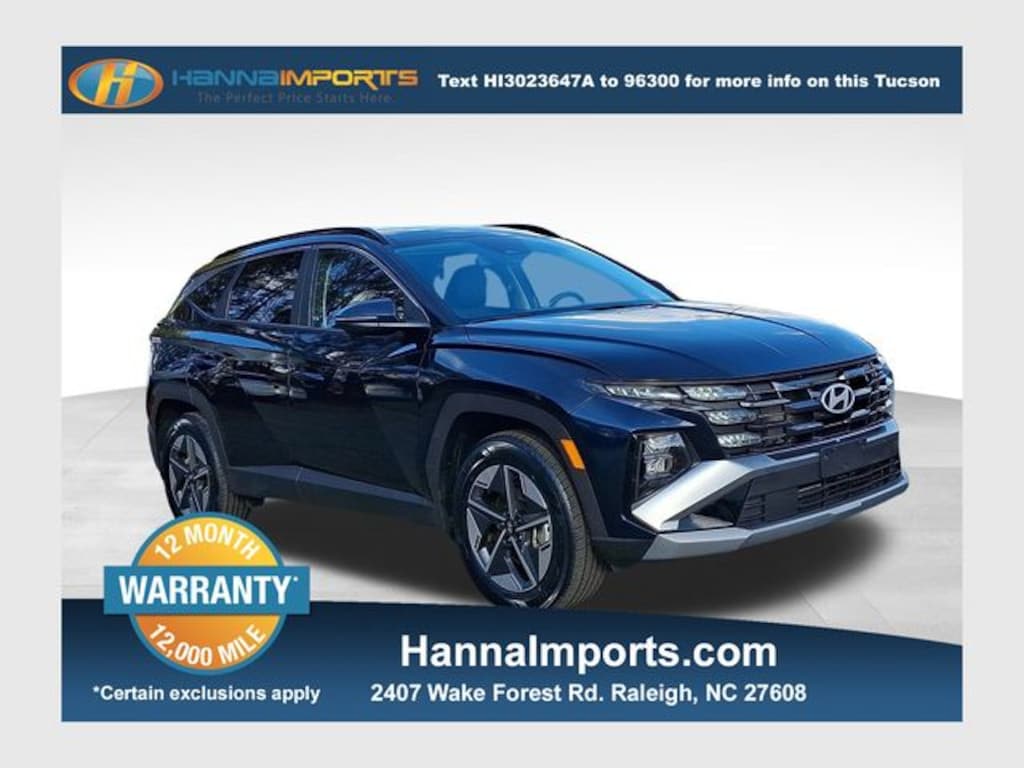 Why shop with Hanna Imports? We specialize in hand-selecting top-quality used cars, trucks, and SUVs for drivers across Raleigh, Durham, Cary, Chapel Hill, and the greater Triangle area of North Carolina. Our massive selection of 1,000+ vehicles on our Raleigh lot is carefully curated to include the most sought-after models, all priced below market value. We believe in transparency and efficiencyâ"our vehicles are aggressively priced from the start, which means no haggling, no hassle, and no wasted time. The price you see is our absolute best price. Whether you're coming from Wake Forest, Apex, Garner, or anywhere in central NC, weâre committed to making your car-buying experience smooth, affordable, and enjoyable. Come see why Hanna Imports is one of the most trusted used car dealerships in North Carolina! Used Hyundai Tucson Hybrid in Raleigh. Used Hyundai Tucson Hybrid in North Carolina, Option Group 01, Tucson Hybrid SEL Convenience, 1.6L I4 DGI Hybrid Turbocharged DOHC 16V LEV3-SULEV30, Apple CarPlay & Android Auto, Navigation System, Power Liftgate, Power moonroof, Remote keyless entry, 18" Alloy Wheels, 4-Wheel Disc Brakes, 6 Speakers, ABS brakes, Air Conditioning, All Season Fitted Liners, Alloy wheels, AM/FM radio: SiriusXM, Auto High-beam Headlights, Auto-dimming Rear-View mirror, Automatic temperature control, Brake assist, Bumpers: body-color, Cargo Tray, Delay-off headlights, Driver door bin, Driver vanity mirror, Dual front impact airbags, Dual front side impact airbags, Electronic Stability Control, Emergency communication system: Bluelink+, First Aid Kit, Four wheel independent suspension, Front anti-roll bar, Front Bucket Seats, Front Center Armrest, Front dual zone A/C, Front reading lights, Fully automatic headlights, H-Tex Seat Trim, Heated door mirrors, Heated Front Bucket Seats, Heated front seats, Illuminated entry, Leather steering wheel, Low tire pressure warning, Mud Guards, Occupant sensing airbag, Outside temperature display, Overhead airbag, Overhead console, Panic alarm, Passenger door bin, Passenger vanity mirror, Power door mirrors, Power driver seat, Power steering, Power windows, Radio data system, Radio: AM/FM/HD Audio System, Rear anti-roll bar, Rear reading lights, Rear seat center armrest, Rear side impact airbag, Rear window defroster, Rear window wiper, Security system, Speed control, Split folding rear seat, Spoiler, Steering wheel mounted audio controls, Tachometer, Telescoping steering wheel, Tilt steering wheel, Traction control, Trip computer, Turn signal indicator mirrors, and Variably intermittent wipers.