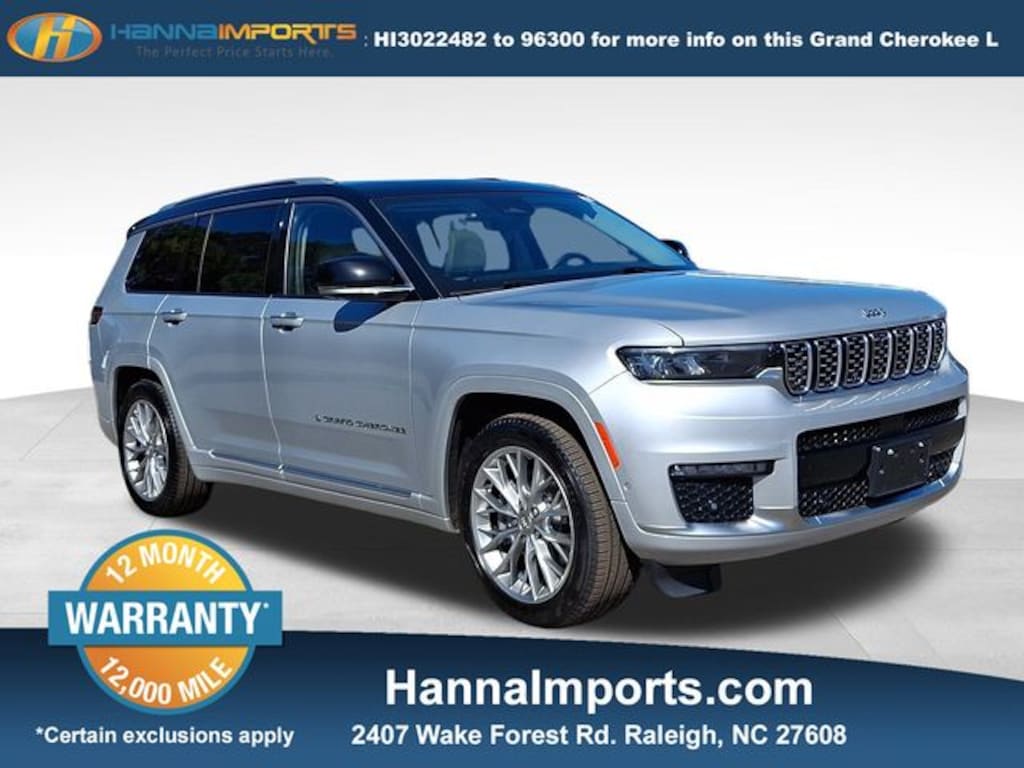 Why shop with Hanna Imports? We specialize in hand-selecting top-quality used cars, trucks, and SUVs for drivers across Raleigh, Durham, Cary, Chapel Hill, and the greater Triangle area of North Carolina. Our massive selection of 1,000+ vehicles on our Raleigh lot is carefully curated to include the most sought-after models, all priced below market value. We believe in transparency and efficiencyâ"our vehicles are aggressively priced from the start, which means no haggling, no hassle, and no wasted time. The price you see is our absolute best price. Whether you're coming from Wake Forest, Apex, Garner, or anywhere in central NC, weâre committed to making your car-buying experience smooth, affordable, and enjoyable. Come see why Hanna Imports is one of the most trusted used car dealerships in North Carolina! Used Jeep Grand Cherokee L in Raleigh. Used Jeep Grand Cherokee L in North Carolina, Luxury Tech Group V (2nd Row Manual Window Shades and Wireless Charging Pad), Quick Order Package 22S, Two Tone Paint Group, Grand Cherokee L Summit, 4WD, 3rd row seats: split-bench, Navigation System, Power Liftgate, Power moonroof, Remote keyless entry, Wheels: 20" x 8.5" Fully Painted Aluminum Silver, 10 Speakers, 3.45 Rear Axle Ratio, 4-Wheel Disc Brakes, ABS brakes, Active Noise Control System, Adaptive suspension, Air Conditioning, Alloy wheels, AM/FM radio: SiriusXM with 360L, Anti-whiplash front head restraints, Audio memory, Auto High-beam Headlights, Auto-dimming door mirrors, Auto-dimming Rear-View mirror, Auto-leveling suspension, Automatic temperature control, Brake assist, Bumpers: body-color, Compass, Delay-off headlights, Driver door bin, Driver vanity mirror, Dual front impact airbags, Dual front side impact airbags, Electronic Stability Control, Emergency communication system, Four wheel independent suspension, Front anti-roll bar, Front Bucket Seats, Front Center Armrest w/Storage, Front dual zone A/C, Front fog lights, Front reading lights, Fully automatic headlights, Garage door transmitter, Genuine wood dashboard insert, Genuine wood door panel insert, Heated door mirrors, Heated front seats, Heated rear seats, Heated steering wheel, Illuminated entry, Knee airbag, Leather steering wheel, Low tire pressure warning, Memory seat, Nappa Leather Seats, Normal Duty Suspension, Occupant sensing airbag, Outside temperature display, Overhead airbag, Overhead console, Panic alarm, Passenger door bin, Passenger vanity mirror, Power door mirrors, Power driver seat, Power Fold Seatbacks, Power passenger seat, Power steering, Power windows, Radio data system, Radio: Uconnect 5 Nav w/10.1" Display, Rain sensing wipers, Rear air conditioning, Rear anti-roll bar, Rear dual zone A/C, Rear reading lights, Rear seat center armrest, Rear window defroster, Rear window wiper, Reclining 3rd row seat, Security system, Speed control, Speed-Sensitive Wipers, Split folding rear seat, Spoiler, Steering wheel memory, Steering wheel mounted audio controls, Tachometer, Telescoping steering wheel, Tilt steering wheel, Traction control, Trip computer, Turn signal indicator mirrors, Variably intermittent wipers, Ventilated front seats, and Voltmeter.
