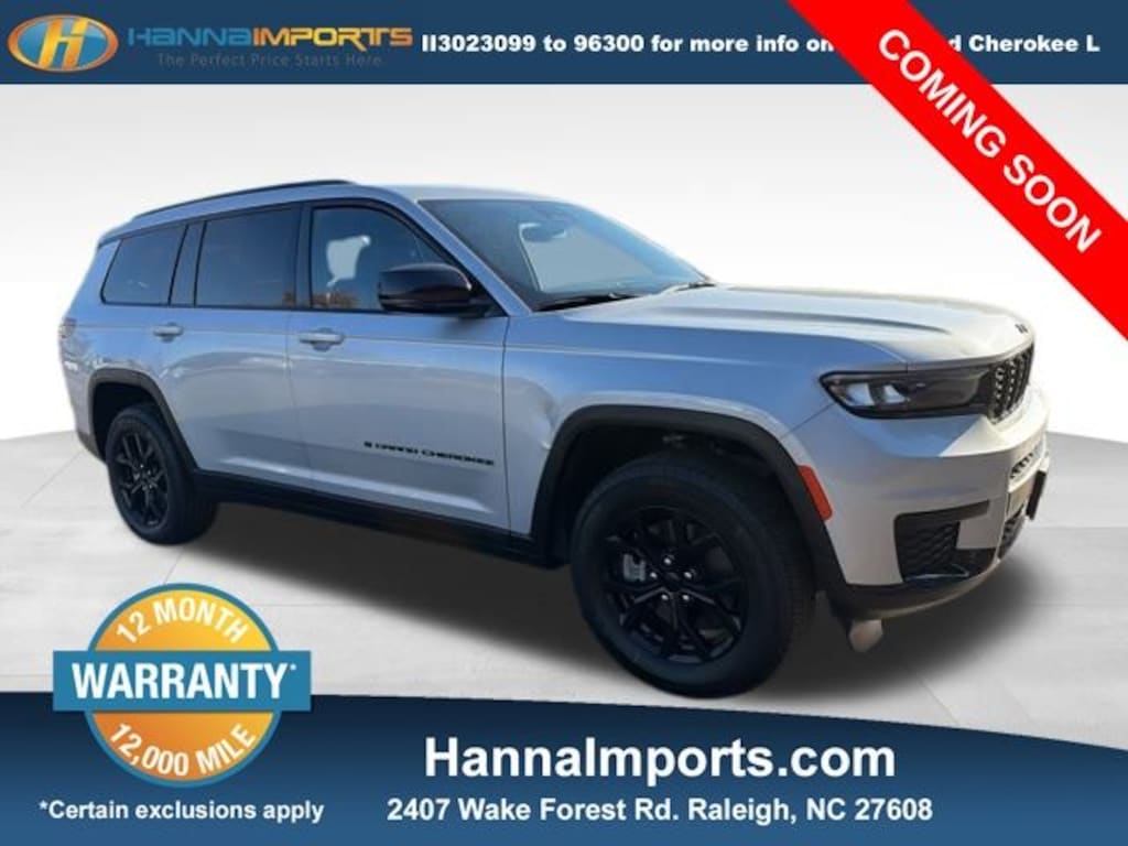 Why shop with Hanna Imports? We specialize in hand-selecting top-quality used cars, trucks, and SUVs for drivers across Raleigh, Durham, Cary, Chapel Hill, and the greater Triangle area of North Carolina. Our massive selection of 1,000+ vehicles on our Raleigh lot is carefully curated to include the most sought-after models, all priced below market value. We believe in transparency and efficiencyâ"our vehicles are aggressively priced from the start, which means no haggling, no hassle, and no wasted time. The price you see is our absolute best price. Whether you're coming from Wake Forest, Apex, Garner, or anywhere in central NC, weâre committed to making your car-buying experience smooth, affordable, and enjoyable. Come see why Hanna Imports is one of the most trusted used car dealerships in North Carolina! Used Jeep Grand Cherokee L in Raleigh. Used Jeep Grand Cherokee L in North Carolina, Altitude Appearance Package, Quick Order Package 23B Altitude (115V Auxiliary Power Outlet, 3rd Row Charge-Only USB Ports, Black Headliner, Capri Leatherette/Suede Seats, Delete Laredo Badge, Gloss Black Exterior Accents, Heated Front Seats, Heated Steering Wheel, Power Liftgate, Rain Sensitive Windshield Wipers, Remote Start System, Selectable Tire Fill Alert, Wheels: 18" x 8.0" Fully Painted Aluminum 1, and Wireless Charging Pad), Grand Cherokee L Altitude, 4WD, 3rd row seats: split-bench, ParkView Rear Back-Up Camera, 2nd Row 60/40 Bench w/Manual Tip/Slide, 2nd Row Seat Center Armrest/Cupholders, 3 Rear Seat Head Restraints, 3.45 Rear Axle Ratio, 4-Wheel Disc Brakes, 6 Speakers, 7-Passenger Seating, ABS brakes, Air Conditioning, Alloy wheels, Anti-whiplash front head restraints, Automatic temperature control, Brake assist, Bumpers: body-color, Center Rear 3-Point Seat Belt, Cloth Seats, Compass, Delay-off headlights, Driver door bin, Driver vanity mirror, Dual front impact airbags, Dual front side impact airbags, Electronic Stability Control, Emergency communication system, Four wheel independent suspension, Front anti-roll bar, Front Bucket Seats, Front Center Armrest w/Storage, Front dual zone A/C, Front License Plate Bracket, Front reading lights, Fully automatic headlights, Heated door mirrors, Illuminated entry, Knee airbag, Low tire pressure warning, Manual Fold Seatbacks, Normal Duty Suspension, Occupant sensing airbag, Outside temperature display, Overhead airbag, Overhead console, Panic alarm, Passenger door bin, Passenger vanity mirror, Power door mirrors, Power driver seat, Power steering, Power windows, Radio data system, Radio: Uconnect 5 w/8.4" Display, Rear air conditioning, Rear anti-roll bar, Rear reading lights, Rear window defroster, Rear window wiper, Reclining 3rd row seat, Remote keyless entry, Security system, Speed control, Speed-Sensitive Wipers, Split folding rear seat, Spoiler, Steering wheel mounted audio controls, Tachometer, Telescoping steering wheel, Tilt steering wheel, Traction control, Trip computer, Variably intermittent wipers, Voltmeter, and Wheels: 18" x 8.0" Fully Painted Aluminum.