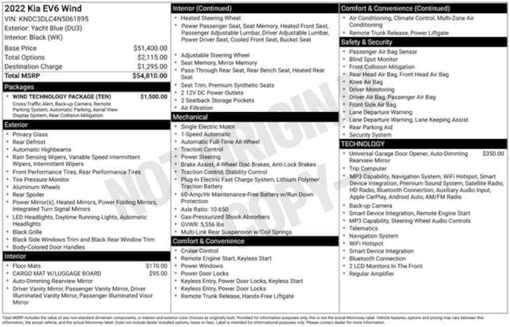 2022 Kia EV6 Wind Yacht Blue Odometer is 11099 miles below market average! 116/94 City/Highway MPG