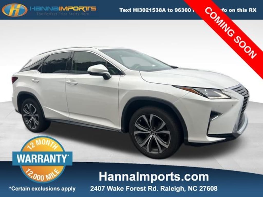Why shop with Hanna Imports? We specialize in hand-selecting top-quality used cars, trucks, and SUVs for drivers across Raleigh, Durham, Cary, Chapel Hill, and the greater Triangle area of North Carolina. Our massive selection of 1,000+ vehicles on our Raleigh lot is carefully curated to include the most sought-after models, all priced below market value. We believe in transparency and efficiencyâ"our vehicles are aggressively priced from the start, which means no haggling, no hassle, and no wasted time. The price you see is our absolute best price. Whether you're coming from Wake Forest, Apex, Garner, or anywhere in central NC, weâre committed to making your car-buying experience smooth, affordable, and enjoyable. Come see why Hanna Imports is one of the most trusted used car dealerships in North Carolina! Used Lexus RX in Raleigh. Used Lexus RX in North Carolina, Navigation Package (Lexus Enform App Suite, Lexus Enform Destination Assist, and Radio: AM/FM/In-Dash CD/DVD Player & Navigation), Premium Package (Driver Seat Memory w/3 Settings, Leather Seat Trim, Power Folding Electrochromic Mirror w/Memory, Rear Armrest Storage Compartment, Steering Wheel Memory, and Wood Door Trim), Parchment w/Leather Seat Trim, ABS brakes, Active Cruise Control, Alloy wheels, Blind Spot Monitor & Rear Cross Traffic Alert, Compass, Electronic Stability Control, Exterior Parking Camera Rear, Front dual zone A/C, Heated & Ventilated Front Seats, Heated door mirrors, Illuminated entry, Intuitive Parking Assist, Low tire pressure warning, Power Liftgate, Power Tilt & Slide Moonroof, Remote keyless entry, Traction control, Wheels: 20" x 8" Split 5-Spoke Dark Silver, 3.329 Axle Ratio, 4-Wheel Disc Brakes, 9 Speakers, Air Conditioning, AM/FM radio: SiriusXM, AM/FM/CD Radio, Anti-whiplash front head restraints, Auto High-beam Headlights, Auto-dimming Rear-View mirror, Automatic temperature control, Brake assist, Bumpers: body-color, CD player, Delay-off headlights, Distance pacing cruise control: All-Speed Dynamic Radar Cruise Control, Driver door bin, Driver vanity mirror, Dual front impact airbags, Dual front side impact airbags, Emergency communication system: Lexus Enform w/Safety Connect, Four wheel independent suspension, Front anti-roll bar, Front Bucket Seats, Front Center Armrest, Front fog lights, Front reading lights, Fully automatic headlights, Garage door transmitter: HomeLink, Knee airbag, Leather Shift Knob, Leather steering wheel, NuLuxe Seat Trim, Occupant sensing airbag, Outside temperature display, Overhead airbag, Overhead console, Panic alarm, Passenger door bin, Passenger vanity mirror, Power door mirrors, Power driver seat, Power passenger seat, Power steering, Power windows, Radio data system, Rain sensing wipers, Rear anti-roll bar, Rear reading lights, Rear seat center armrest, Rear side impact airbag, Rear window defroster, Rear window wiper, Security system, Speed control, Speed-sensing steering, Split folding rear seat, Spoiler, Steering wheel mounted audio controls, Ta