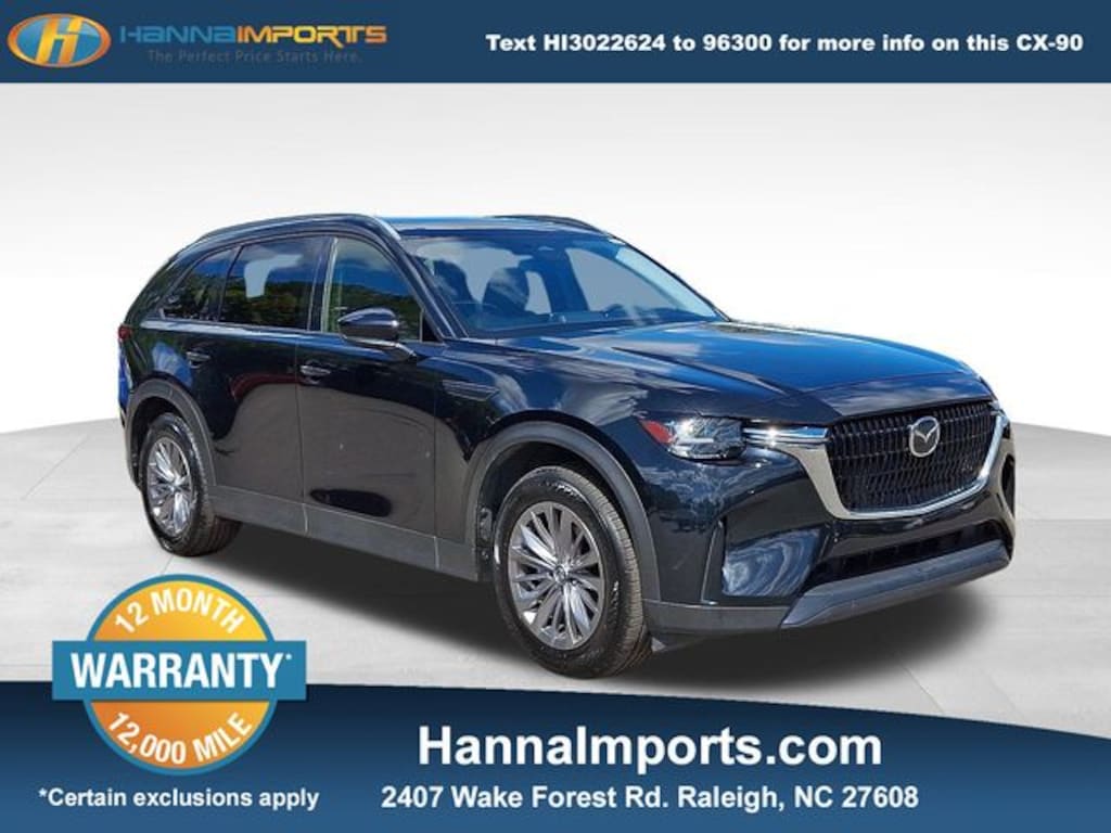 Why shop with Hanna Imports? We specialize in hand-selecting top-quality used cars, trucks, and SUVs for drivers across Raleigh, Durham, Cary, Chapel Hill, and the greater Triangle area of North Carolina. Our massive selection of 1,000+ vehicles on our Raleigh lot is carefully curated to include the most sought-after models, all priced below market value. We believe in transparency and efficiencyâ"our vehicles are aggressively priced from the start, which means no haggling, no hassle, and no wasted time. The price you see is our absolute best price. Whether you're coming from Wake Forest, Apex, Garner, or anywhere in central NC, weâre committed to making your car-buying experience smooth, affordable, and enjoyable. Come see why Hanna Imports is one of the most trusted used car dealerships in North Carolina! Used Mazda CX-90 in Raleigh. Used Mazda CX-90 in North Carolina, CX-90 3.3 Turbo Preferred Plus, AWD, 3rd row seats: bench, AppLink/Apple CarPlay and Android Auto, Exterior Parking Camera Rear, Heated Front Bucket Seats, Infotainment System Voice Command, Power Liftgate, Power moonroof, Remote keyless entry, Steering wheel mounted audio controls, 3.692 Axle Ratio, 4-Wheel Disc Brakes, 8 Speakers, ABS brakes, Air Conditioning, Alloy wheels, AM/FM radio, Auto High-beam Headlights, Automatic temperature control, Brake assist, Bumpers: body-color, Compass, Delay-off headlights, Driver door bin, Driver vanity mirror, Dual front impact airbags, Dual front side impact airbags, E911 Automatic Emergency Notification, Electronic Stability Control, Emergency communication system: MAZDA CONNECT, Four wheel independent suspension, Front anti-roll bar, Front Bucket Seats, Front Center Armrest w/Storage, Front dual zone A/C, Front reading lights, Fully automatic headlights, Heads-Up Display, Heated door mirrors, Heated front seats, Illuminated entry, Knee airbag, Leather Seat Trim, Leather Shift Knob, Leather steering wheel, Low tire pressure warning, Mazda Connected Services, Occupant sensing airbag, Outside temperature display, Overhead airbag, Overhead console, Pandora Internet Radio Integration, Panic alarm, Passenger door bin, Passenger vanity mirror, Power door mirrors, Power driver seat, Power passenger seat, Power steering, Power windows, Radio Broadcast Data System Program Information, Radio data system, Radio: AM/FM Sound System, Rain sensing wipers, Rear air conditioning, Rear anti-roll bar, Rear reading lights, Rear seat center armrest, Rear window defroster, Rear window wiper, SMS Text Msg Audio Delivery & Reply, Speed control, Speed-sensing steering, Split folding rear seat, Spoiler, Tachometer, Telescoping steering wheel, Tilt steering wheel, Traction control, Trip computer, Turn signal indicator mirrors, Variably intermittent wipers, and Wheels: 19" x 8.5J Aluminum Alloy.
