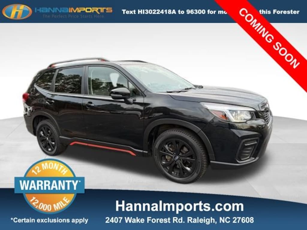 Why shop with Hanna Imports? We specialize in hand-selecting top-quality used cars, trucks, and SUVs for drivers across Raleigh, Durham, Cary, Chapel Hill, and the greater Triangle area of North Carolina. Our massive selection of 1,000+ vehicles on our Raleigh lot is carefully curated to include the most sought-after models, all priced below market value. We believe in transparency and efficiencyâ"our vehicles are aggressively priced from the start, which means no haggling, no hassle, and no wasted time. The price you see is our absolute best price. Whether you're coming from Wake Forest, Apex, Garner, or anywhere in central NC, weâre committed to making your car-buying experience smooth, affordable, and enjoyable. Come see why Hanna Imports is one of the most trusted used car dealerships in North Carolina! Used Subaru Forester in Raleigh. Used Subaru Forester in North Carolina, BSD & Reverse Auto Braking & Multimedia Plus Audio (Blind Spot Detection w/Rear Cross Traffic Alert, Radio: Subaru Starlink 8.0" Multimedia Plus System, and Reverse Automatic Braking System (RAB)), Forester Sport, Exterior Parking Camera Rear, Power moonroof: Panoramic, Remote keyless entry, 3.70 Axle Ratio, 4-Wheel Disc Brakes, 6 Speakers, ABS brakes, Air Conditioning, All-Weather Floor Liners, Alloy wheels, AM/FM radio: SiriusXM, Auto High-beam Headlights, Auto-Dimming Exterior Mirror w/Approach Lighting, Auto-Dimming Mirror w/Compass & HomeLink, Automatic temperature control, Brake assist, Bumpers: body-color, CD player, Driver door bin, Driver vanity mirror, Driver's Side Mirror - Bulk, Dual front impact airbags, Dual front side impact airbags, Electronic Stability Control, Emergency communication system: STARLINK Safety and Security, Exterior Mirror Hardware Kit, Four wheel independent suspension, Front anti-roll bar, Front Bucket Seats, Front Center Armrest, Front fog lights, Front reading lights, Fully automatic headlights, Heated door mirrors, Heated Front Bucket Seats, Heated front seats, Illuminated entry, Knee airbag, Leather Shift Knob, Low tire pressure warning, Occupant sensing airbag, Outside temperature display, Overhead airbag, Overhead console, Paddle-Shift Control Switches, Panic alarm, Passenger door bin, Passenger vanity mirror, Passenger's Side Mirror - Bulk, Power door mirrors, Power driver seat, Power steering, Power windows, Radio data system, Radio: Subaru Starlink 6.5" Multimedia Plus System, Rear anti-roll bar, Rear seat center armrest, Rear Seatback Protector, Rear window defroster, Rear window wiper, Roof rack: rails only, Security system, Speed control, Speed-sensing steering, Split folding rear seat, Spoiler, Sport Cloth Upholstery, STARLINK/Apple CarPlay/Android Auto, Steering wheel mounted audio controls, Tachometer, Telescoping steering wheel, Tilt steering wheel, Traction control, Trip computer, Turn signal indicator mirrors, Variably intermittent wipers, and Wheels: 18" x 7.0J Black Finish Aluminum Alloy.