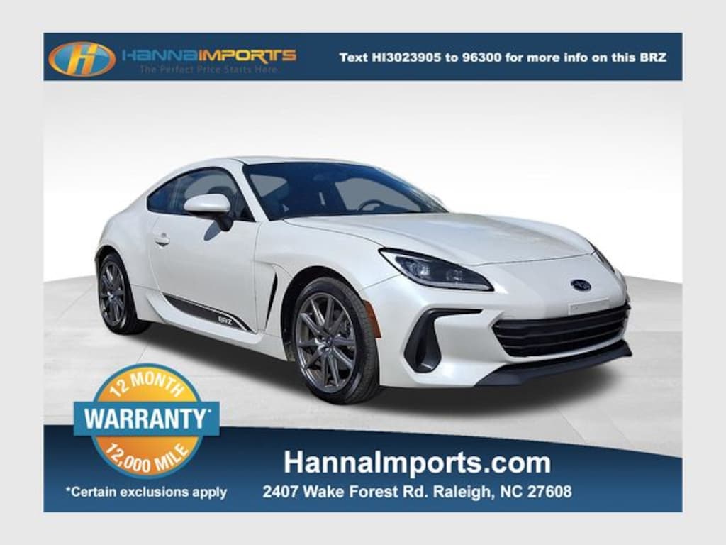 Why shop with Hanna Imports? We specialize in hand-selecting top-quality used cars, trucks, and SUVs for drivers across Raleigh, Durham, Cary, Chapel Hill, and the greater Triangle area of North Carolina. Our massive selection of 1,000+ vehicles on our Raleigh lot is carefully curated to include the most sought-after models, all priced below market value. We believe in transparency and efficiencyâ"our vehicles are aggressively priced from the start, which means no haggling, no hassle, and no wasted time. The price you see is our absolute best price. Whether you're coming from Wake Forest, Apex, Garner, or anywhere in central NC, weâre committed to making your car-buying experience smooth, affordable, and enjoyable. Come see why Hanna Imports is one of the most trusted used car dealerships in North Carolina! Used Subaru BRZ in Raleigh. Used Subaru BRZ in North Carolina, Standard Model, BRZ Premium, Close-Ratio 6-Speed Manual, Exterior Parking Camera Rear, Remote keyless entry, 4-Wheel Disc Brakes, 6 Speakers, ABS brakes, Air Conditioning, All-Weather Floor Liners, Alloy wheels, AM/FM radio: SiriusXM, Anti-whiplash front head restraints, Auto High-beam Headlights, Automatic temperature control, Brake assist, Bumpers: body-color, Cargo Tray, Cloth Upholstery w/Red Stitching, Delay-off headlights, Driver door bin, Driver vanity mirror, Dual front impact airbags, Dual front side impact airbags, Electronic Stability Control, Four wheel independent suspension, Front anti-roll bar, Front Bucket Seats, Front dual zone A/C, Front fog lights, Front reading lights, Fully automatic headlights, Illuminated entry, Knee airbag, Leather Shift Knob, Leather steering wheel, Low tire pressure warning, Occupant sensing airbag, Outside temperature display, Overhead airbag, Overhead console, Panic alarm, Passenger door bin, Passenger vanity mirror, Performance Design Front Bucket Seats, Power door mirrors, Power steering, Power windows, Radio data system, Radio: Subaru STARLINK 8.0" Multimedia Plus System, Rear anti-roll bar, Rear Bumper Applique, Rear window defroster, Security system, Side Exterior Graphics Kit, Speed control, Speed-Sensitive Wipers, Spoiler, STARLINK/Apple CarPlay/Android Auto, Steering wheel mounted audio controls, Tachometer, Telescoping steering wheel, Tilt steering wheel, Traction control, Trip computer, Variably intermittent wipers, Voltmeter, and Wheels: 17" x 7.5 J High Luster Gray Finish Alloy.