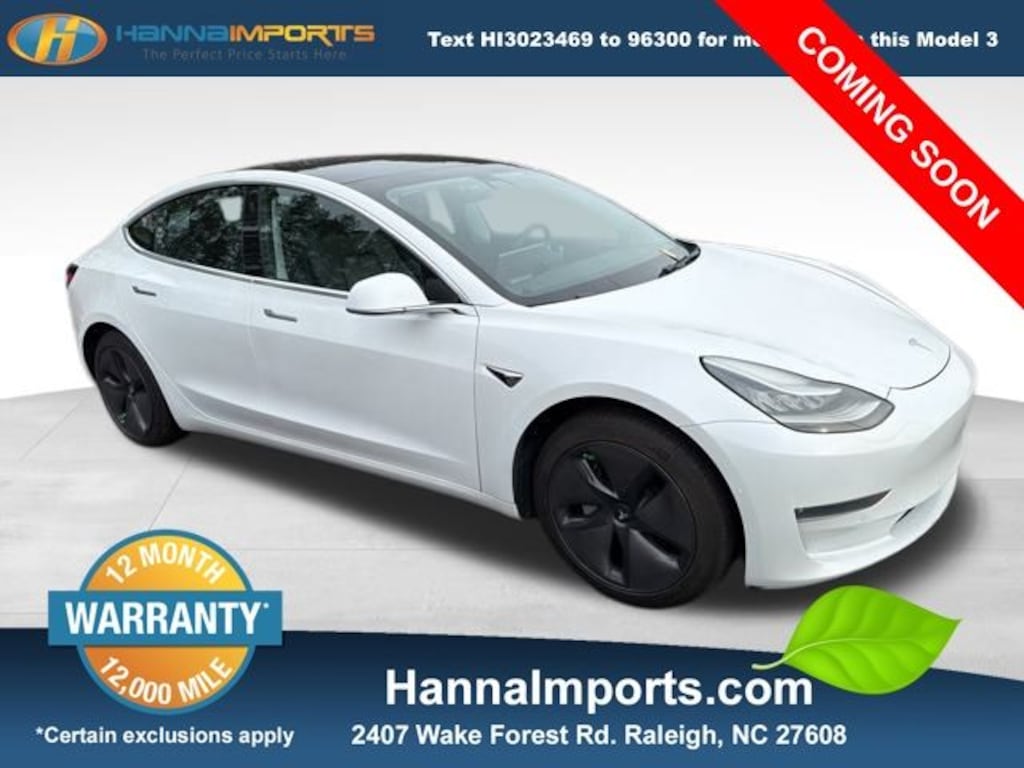 Why shop with Hanna Imports? We specialize in hand-selecting top-quality used cars, trucks, and SUVs for drivers across Raleigh, Durham, Cary, Chapel Hill, and the greater Triangle area of North Carolina. Our massive selection of 1,000+ vehicles on our Raleigh lot is carefully curated to include the most sought-after models, all priced below market value. We believe in transparency and efficiencyâ"our vehicles are aggressively priced from the start, which means no haggling, no hassle, and no wasted time. The price you see is our absolute best price. Whether you're coming from Wake Forest, Apex, Garner, or anywhere in central NC, weâre committed to making your car-buying experience smooth, affordable, and enjoyable. Come see why Hanna Imports is one of the most trusted used car dealerships in North Carolina! Used Tesla Model 3 in Raleigh. Used Tesla Model 3 in North Carolina, Model 3 Long Range, AWD, Exterior Parking Camera Rear, Heated front seats, Heated rear seats, Navigation System, 15 Speakers, 4-Wheel Disc Brakes, ABS brakes, Air Conditioning, Alloy wheels, Auto High-beam Headlights, Auto-dimming Rear-View mirror, Automatic temperature control, Brake assist, Bumpers: body-color, Compass, Delay-off headlights, Driver door bin, Driver vanity mirror, Dual front impact airbags, Dual front side impact airbags, Electronic Stability Control, Four wheel independent suspension, Front anti-roll bar, Front Bucket Seats, Front Center Armrest, Front dual zone A/C, Front fog lights, Front reading lights, Fully automatic headlights, Genuine wood dashboard insert, Heated door mirrors, Illuminated entry, Knee airbag, Low tire pressure warning, Memory seat, Occupant sensing airbag, Outside temperature display, Overhead airbag, Passenger door bin, Passenger vanity mirror, Power door mirrors, Power driver seat, Power passenger seat, Power steering, Power windows, Premium Audio System, Premium Heated Front Bucket Seats, Premium Seat Trim, Radio data system, Rear reading lights, Rear seat center armrest, Rear window defroster, Security system, Speed control, Speed-sensing steering, Split folding rear seat, Steering wheel memory, Steering wheel mounted A/C controls, Steering wheel mounted audio controls, Telescoping steering wheel, Tilt steering wheel, Traction control, Trip computer, Variably intermittent wipers, and Wheels: 18" x 8.5" Aero.