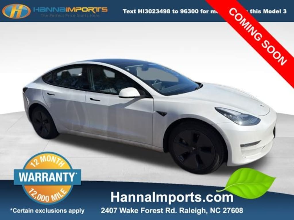 Why shop with Hanna Imports? We specialize in hand-selecting top-quality used cars, trucks, and SUVs for drivers across Raleigh, Durham, Cary, Chapel Hill, and the greater Triangle area of North Carolina. Our massive selection of 1,000+ vehicles on our Raleigh lot is carefully curated to include the most sought-after models, all priced below market value. We believe in transparency and efficiencyâ"our vehicles are aggressively priced from the start, which means no haggling, no hassle, and no wasted time. The price you see is our absolute best price. Whether you're coming from Wake Forest, Apex, Garner, or anywhere in central NC, weâre committed to making your car-buying experience smooth, affordable, and enjoyable. Come see why Hanna Imports is one of the most trusted used car dealerships in North Carolina! Used Tesla Model 3 in Raleigh. Used Tesla Model 3 in North Carolina, Model 3 Standard Range Plus, Exterior Parking Camera Rear, Lane Departure Warning System, Navigation System, 4-Wheel Disc Brakes, 8 Speakers, ABS brakes, Air Conditioning, Alloy wheels, Auto High-beam Headlights, Auto-dimming door mirrors, Auto-dimming Rear-View mirror, Automatic temperature control, Brake assist, Bumpers: body-color, Compass, Delay-off headlights, Driver door bin, Driver vanity mirror, Dual front impact airbags, Dual front side impact airbags, Electronic Stability Control, Four wheel independent suspension, Front anti-roll bar, Front Bucket Seats, Front Center Armrest, Front dual zone A/C, Front reading lights, Fully automatic headlights, Genuine wood dashboard insert, Heated door mirrors, Heated front seats, Heated rear seats, Heated steering wheel, Illuminated entry, Knee airbag, Low tire pressure warning, Memory seat, Occupant sensing airbag, Outside temperature display, Overhead airbag, Passenger door bin, Passenger vanity mirror, Power door mirrors, Power driver seat, Power passenger seat, Power steering, Power windows, Premium Heated Front Bucket Seats, Premium Seat Trim, Radio data system, Radio: Upgraded Audio System, Rear reading lights, Rear seat center armrest, Rear window defroster, Security system, Speed control, Speed-sensing steering, Split folding rear seat, Steering wheel memory, Steering wheel mounted A/C controls, Steering wheel mounted audio controls, Telescoping steering wheel, Tilt steering wheel, Traction control, Trip computer, Variably intermittent wipers, and Wheels: 18" x 8.5" Aero.