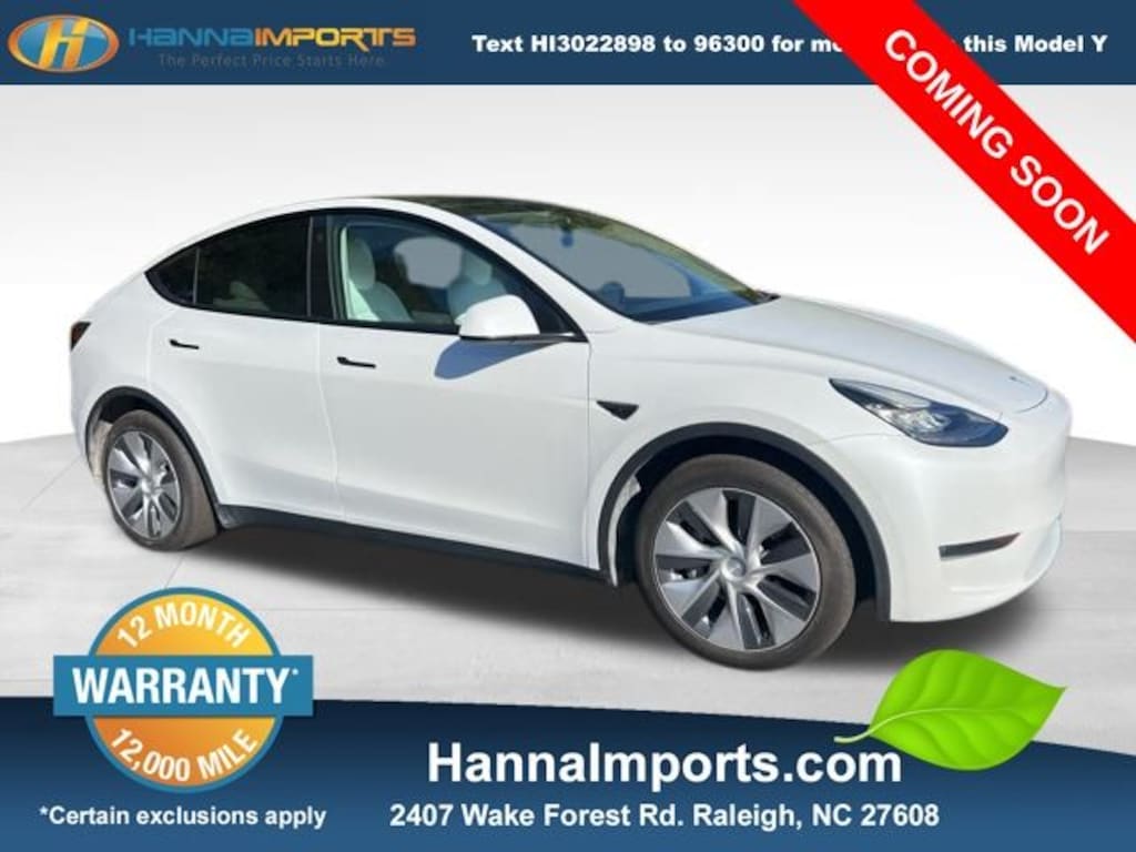 Why shop with Hanna Imports? We specialize in hand-selecting top-quality used cars, trucks, and SUVs for drivers across Raleigh, Durham, Cary, Chapel Hill, and the greater Triangle area of North Carolina. Our massive selection of 1,000+ vehicles on our Raleigh lot is carefully curated to include the most sought-after models, all priced below market value. We believe in transparency and efficiencyâ"our vehicles are aggressively priced from the start, which means no haggling, no hassle, and no wasted time. The price you see is our absolute best price. Whether you're coming from Wake Forest, Apex, Garner, or anywhere in central NC, weâre committed to making your car-buying experience smooth, affordable, and enjoyable. Come see why Hanna Imports is one of the most trusted used car dealerships in North Carolina! Used Tesla Model Y in Raleigh. Used Tesla Model Y in North Carolina, Model Y Long Range, AWD, 5 Seat Interior, Auto tilt-away steering wheel, Exterior Parking Camera Rear, Front Bucket Seats, Genuine wood dashboard insert, Heated front seats, Heated rear seats, Heated steering wheel, Lane Departure Warning System, Navigation System, Power Liftgate, Premium Audio System, Premium Seat Trim, Remote keyless entry, 14 Speakers, 4-Wheel Disc Brakes, 9.0 Axle Ratio, ABS brakes, Air Conditioning, Alloy wheels, Audio memory, Auto High-beam Headlights, Auto-dimming door mirrors, Auto-dimming Rear-View mirror, Automatic temperature control, Brake assist, Bumpers: body-color, Compass, Delay-off headlights, Driver door bin, Driver vanity mirror, Dual front impact airbags, Dual front side impact airbags, Electronic Stability Control, Four wheel independent suspension, Front anti-roll bar, Front Center Armrest, Front dual zone A/C, Front fog lights, Front reading lights, Fully automatic headlights, Heated door mirrors, HVAC memory, Illuminated entry, Knee airbag, Low tire pressure warning, Memory seat, Occupant sensing airbag, Outside temperature display, Overhead airbag, Passenger door bin, Passenger vanity mirror, Power door mirrors, Power driver seat, Power passenger seat, Power steering, Power windows, Radio data system, Rain sensing wipers, Rear reading lights, Rear seat center armrest, Rear window defroster, Security system, Speed control, Speed-sensing steering, Split folding rear seat, Steering wheel memory, Steering wheel mounted A/C controls, Steering wheel mounted audio controls, Telescoping steering wheel, Tilt steering wheel, Traction control, Trip computer, Variably intermittent wipers, and Wheels: 19" x 9.5" Gemini.