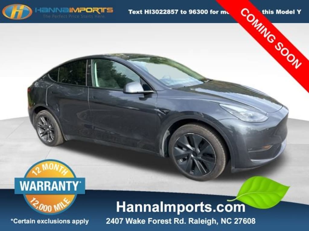 Why shop with Hanna Imports? We specialize in hand-selecting top-quality used cars, trucks, and SUVs for drivers across Raleigh, Durham, Cary, Chapel Hill, and the greater Triangle area of North Carolina. Our massive selection of 1,000+ vehicles on our Raleigh lot is carefully curated to include the most sought-after models, all priced below market value. We believe in transparency and efficiencyâ€"our vehicles are aggressively priced from the start, which means no haggling, no hassle, and no wasted time. The price you see is our absolute best price. Whether you're coming from Wake Forest, Apex, Garner, or anywhere in central NC, we’re committed to making your car-buying experience smooth, affordable, and enjoyable. Come see why Hanna Imports is one of the most trusted used car dealerships in North Carolina! Used Tesla Model Y in Raleigh. Used Tesla Model Y in North Carolina, Model Y Long Range, Exterior Parking Camera Rear, Heated front seats, Heated rear seats, Lane Departure Warning System, Navigation System, Power Liftgate, 4-Wheel Disc Brakes, 5 Seat Interior, 7 Speakers, ABS brakes, Air Conditioning, Alloy wheels, Audio memory, Auto High-beam Headlights, Auto tilt-away steering wheel, Auto-dimming door mirrors, Auto-dimming Rear-View mirror, Automatic temperature control, Brake assist, Bumpers: body-color, Compass, Delay-off headlights, Driver door bin, Driver vanity mirror, Dual front impact airbags, Dual front side impact airbags, Electronic Stability Control, Emergency communication system, Four wheel independent suspension, Front anti-roll bar, Front Bucket Seats, Front Center Armrest, Front dual zone A/C, Front reading lights, Fully automatic headlights, Genuine wood dashboard insert, Heated door mirrors, Heated steering wheel, HVAC memory, Illuminated entry, Knee airbag, Low tire pressure warning, Memory seat, Occupant sensing airbag, Outside temperature display, Overhead airbag, Passenger door bin, Passenger vanity mirror, Power door mirrors, Power driver seat, Power passenger seat, Power steering, Power windows, Radio data system, Radio: Custom Audio System w/7 Speakers, Rain sensing wipers, Rear air conditioning, Rear reading lights, Rear seat center armrest, Rear window defroster, Security system, Speed control, Speed-sensing steering, Split folding rear seat, Steering wheel memory, Steering wheel mounted A/C controls, Steering wheel mounted audio controls, Telescoping steering wheel, Tilt steering wheel, Traction control, Trip computer, Variably intermittent wipers, Vegan Leather Seat Trim, and Wheels: 19" x 9.5" Gemini Dark.