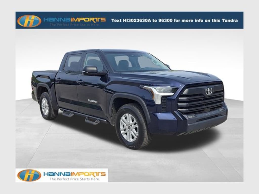 Why shop with Hanna Imports? We specialize in hand-selecting top-quality used cars, trucks, and SUVs for drivers across Raleigh, Durham, Cary, Chapel Hill, and the greater Triangle area of North Carolina. Our massive selection of 1,000+ vehicles on our Raleigh lot is carefully curated to include the most sought-after models, all priced below market value. We believe in transparency and efficiencyâ"our vehicles are aggressively priced from the start, which means no haggling, no hassle, and no wasted time. The price you see is our absolute best price. Whether you're coming from Wake Forest, Apex, Garner, or anywhere in central NC, weâre committed to making your car-buying experience smooth, affordable, and enjoyable. Come see why Hanna Imports is one of the most trusted used car dealerships in North Carolina! Used Toyota Tundra in Raleigh. Used Toyota Tundra in North Carolina, Convenience Package (32 Gallon Fuel Tank, Blind Spot Monitor w/Lane Change Assist, and Parking Support Alert/Brake), SR5 Premium Package (Heated Front Bucket Seats and SofTex Seat Trim), Black w/Leather Seat Trim, 400W/120V AC Deck & Cabin Power Supply, Apple CarPlay/Android Auto, Exterior Parking Camera Rear, Heated Leather Steering Wheel, Load-Leveling Rear Air Suspension, Predator Drop Step (TMS), Radio: Premium Audio, 18" x 8" Alloy Wheels, 3.31 Axle Ratio, 4-Wheel Disc Brakes, 9 Speakers, ABS brakes, Air Conditioning, Alloy wheels, AM/FM Radio, AM/FM radio: SiriusXM, Auto High-beam Headlights, Automatic temperature control, Brake assist, Bumpers: body-color, Delay-off headlights, Driver door bin, Driver vanity mirror, Dual front impact airbags, Dual front side impact airbags, Electronic Stability Control, Emergency communication system: Safety Connect with 1-year trial, Fabric Seat Trim, Front anti-roll bar, Front Bucket Seats, Front Center Armrest, Front fog lights, Front reading lights, Front wheel independent suspension, Fully automatic headlights, Heated door mirrors, Illuminated entry, Knee airbag, Low tire pressure warning, Occupant sensing airbag, Outside temperature display, Overhead airbag, Overhead console, Panic alarm, Passenger door bin, Passenger vanity mirror, Power door mirrors, Power steering, Power windows, Radio data system, Rear reading lights, Rear step bumper, Rear window defroster, Remote keyless entry, Security system, Speed control, Speed-sensing steering, Split folding rear seat, Steering wheel mounted audio controls, Tachometer, Telescoping steering wheel, Tilt steering wheel, Traction control, Trip computer, Turn signal indicator mirrors, Variably intermittent wipers, and Voltmeter.