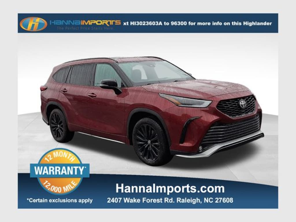 Why shop with Hanna Imports? We specialize in hand-selecting top-quality used cars, trucks, and SUVs for drivers across Raleigh, Durham, Cary, Chapel Hill, and the greater Triangle area of North Carolina. Our massive selection of 1,000+ vehicles on our Raleigh lot is carefully curated to include the most sought-after models, all priced below market value. We believe in transparency and efficiencyâ"our vehicles are aggressively priced from the start, which means no haggling, no hassle, and no wasted time. The price you see is our absolute best price. Whether you're coming from Wake Forest, Apex, Garner, or anywhere in central NC, weâre committed to making your car-buying experience smooth, affordable, and enjoyable. Come see why Hanna Imports is one of the most trusted used car dealerships in North Carolina! Used Toyota Highlander in Raleigh. Used Toyota Highlander in North Carolina, ABS brakes, Active Cruise Control, Alloy wheels, Apple CarPlay/Android Auto, Electronic Stability Control, Exterior Parking Camera Rear, Front dual zone A/C, Heated door mirrors, Heated Front Bucket Seats, Heated front seats, Illuminated entry, Low tire pressure warning, Power Liftgate, Power moonroof, Remote keyless entry, Traction control, 3.329 Axle Ratio, 3rd row seats: split-bench, 4-Wheel Disc Brakes, 6 Speakers, Air Conditioning, AM/FM radio: SiriusXM, Auto High-beam Headlights, Auto-dimming Rear-View mirror, Automatic temperature control, Bodyside moldings, Brake assist, Bumpers: body-color, Delay-off headlights, Driver door bin, Driver vanity mirror, Dual front impact airbags, Dual front side impact airbags, Emergency communication system: Safety Connect (up to 10-year trial subscription), Four wheel independent suspension, Front anti-roll bar, Front Bucket Seats, Front Center Armrest, Front fog lights, Front reading lights, Fully automatic headlights, Garage door transmitter: HomeLink, Knee airbag, Leather Shift Knob, Leather steering wheel, Mixed Media Seat Trim, Occupant sensing airbag, Outside temperature display, Overhead airbag, Overhead console, Panic alarm, Passenger door bin, Passenger vanity mirror, Power door mirrors, Power driver seat, Power passenger seat, Power steering, Power windows, Radio: 8" Toyota Audio Multimedia, Rear air conditioning, Rear anti-roll bar, Rear reading lights, Rear window defroster, Rear window wiper, Reclining 3rd row seat, Roof rack: rails only, Security system, Speed control, Speed-sensing steering, Split folding rear seat, Spoiler, Steering wheel mounted audio controls, Tachometer, Telescoping steering wheel, Tilt steering wheel, Trip computer, Turn signal indicator mirrors, Variably intermittent wipers, and Wheels: 20" Machined-Face Black Painted Alloy.