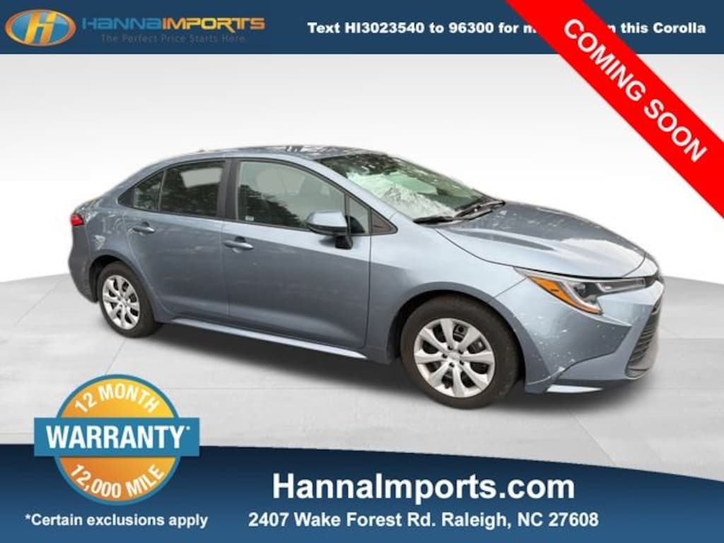 Why shop with Hanna Imports? We specialize in hand-selecting top-quality used cars, trucks, and SUVs for drivers across Raleigh, Durham, Cary, Chapel Hill, and the greater Triangle area of North Carolina. Our massive selection of 1,000+ vehicles on our Raleigh lot is carefully curated to include the most sought-after models, all priced below market value. We believe in transparency and efficiencyâ"our vehicles are aggressively priced from the start, which means no haggling, no hassle, and no wasted time. The price you see is our absolute best price. Whether you're coming from Wake Forest, Apex, Garner, or anywhere in central NC, weâre committed to making your car-buying experience smooth, affordable, and enjoyable. Come see why Hanna Imports is one of the most trusted used car dealerships in North Carolina! Used Toyota Corolla in Raleigh. Used Toyota Corolla in North Carolina, Corolla LE, Exterior Parking Camera Rear, Remote keyless entry, 4-Wheel Disc Brakes, 6 Speakers, ABS brakes, Air Conditioning, AM/FM radio: SiriusXM, Apple CarPlay/Android Auto, Auto High-beam Headlights, Automatic temperature control, Brake assist, Bumpers: body-color, Delay-off headlights, Driver door bin, Driver vanity mirror, Dual front impact airbags, Dual front side impact airbags, Electronic Stability Control, Emergency communication system: Safety Connect (up to 10-year trial subscription), Fabric Seat Trim, Front anti-roll bar, Front Bucket Seats, Front Center Armrest, Front reading lights, Front wheel independent suspension, Fully automatic headlights, Illuminated entry, Knee airbag, Low tire pressure warning, Occupant sensing airbag, Outside temperature display, Overhead airbag, Panic alarm, Passenger door bin, Passenger vanity mirror, Power door mirrors, Power steering, Power windows, Radio data system, Radio: 8" Toyota Audio Multimedia, Rear anti-roll bar, Rear seat center armrest, Rear side impact airbag, Rear window defroster, Speed control, Split folding rear seat, Steering wheel mounted audio controls, Tachometer, Telescoping steering wheel, Tilt steering wheel, Traction control, Trip computer, and Wheels: 16" Steel with Covers.